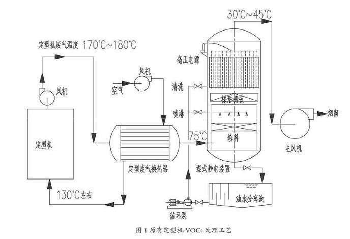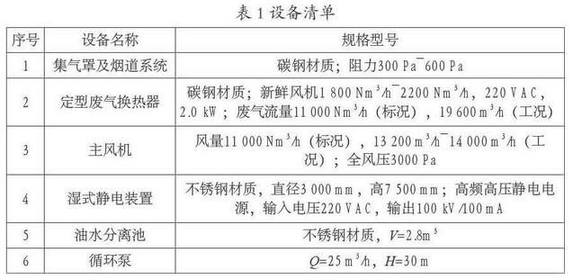 系統包括:定型廢氣換熱系統、濕式靜電裝置系統、主風機等,主要設備參數見表1。