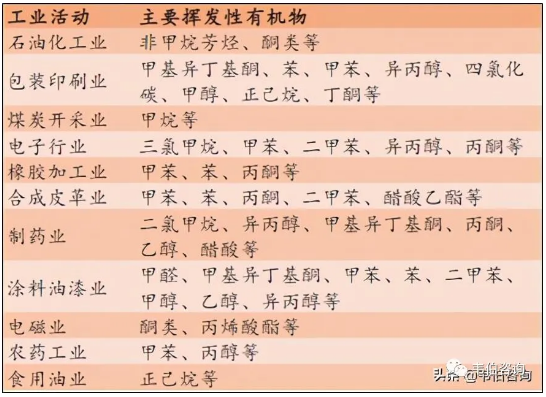 根據生態環境部估算的數據:VOCs人為源包括移動源和固定源,固定源中又包括生活源和工業源等。工業源是VOCs的重點排放領域,其排放量占總排放量的50%以上。而建筑裝飾、餐飲油煙等生活源和機動車等移動源排放的VOCs所占比例僅分別為19.6%和21.5%。