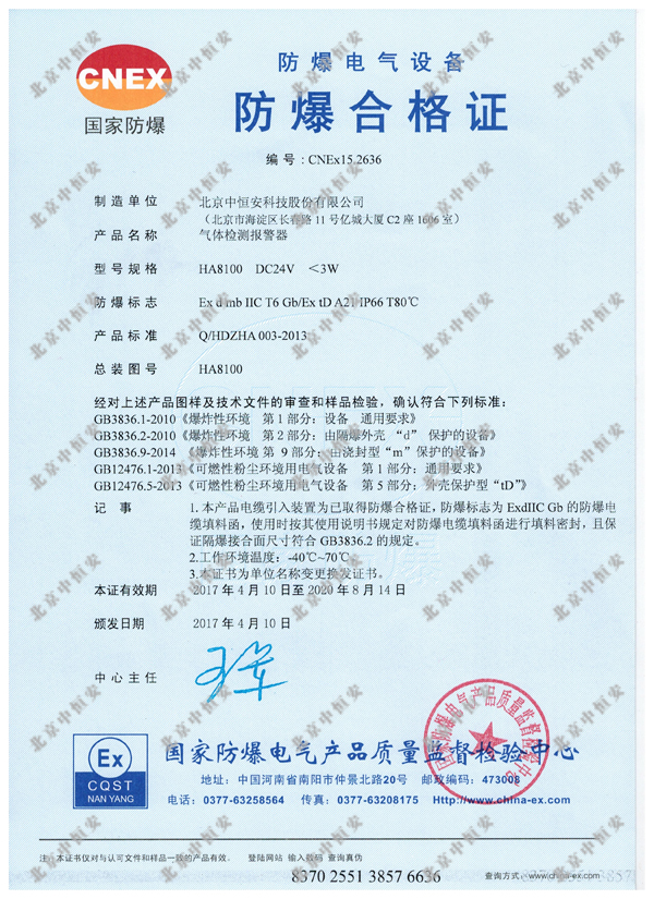 l聲光報警器+氣體探測器一體式防爆認證,保證整體安全性