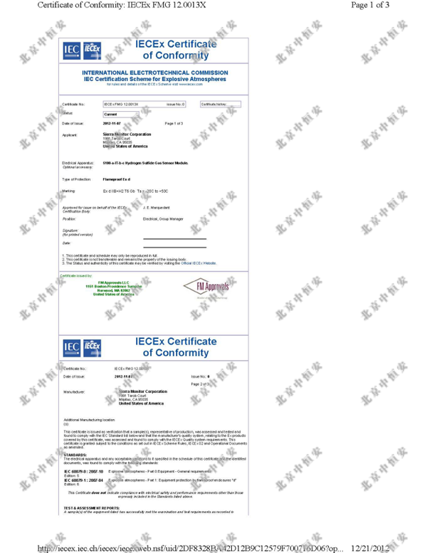 Factory Mutual (FM): Class 1, Div. I, Groups B, C, D(FM Standards 3600, 3615, 3810)