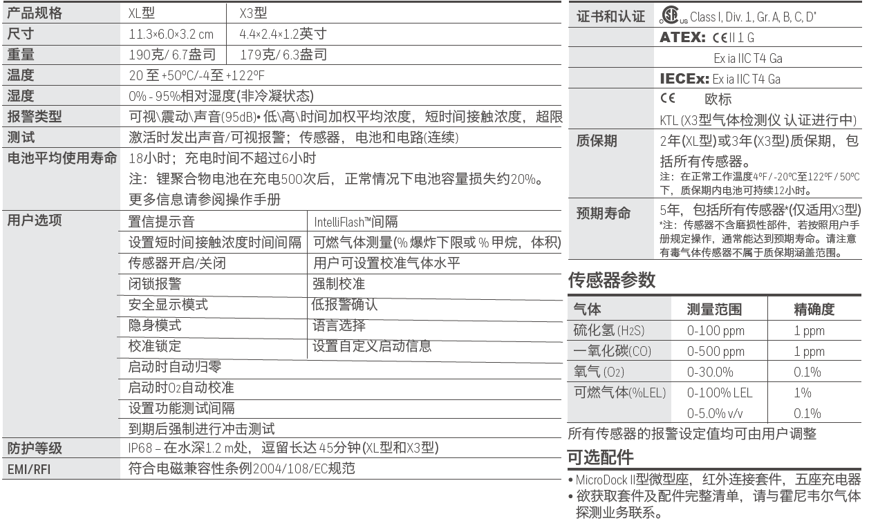 5、微型便攜式氣體報警儀X3: 3年質保期,配備全新的氧氣傳感器,總體預期使用壽命可長達5年。